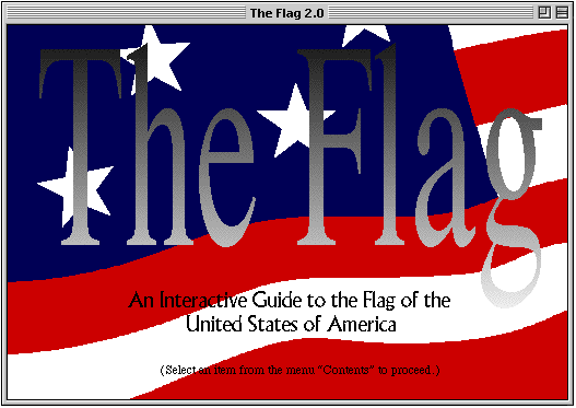This exceptional Hypercard Stack put together by the Salisbury Research Group contains an enormous amount of information about the United States Flag. You can find out the history of the flag, how to display the flag, how to fold a flag properly, and much more. There are great colored illustrations throughout the stack. I was so impressed I wanted to share it!